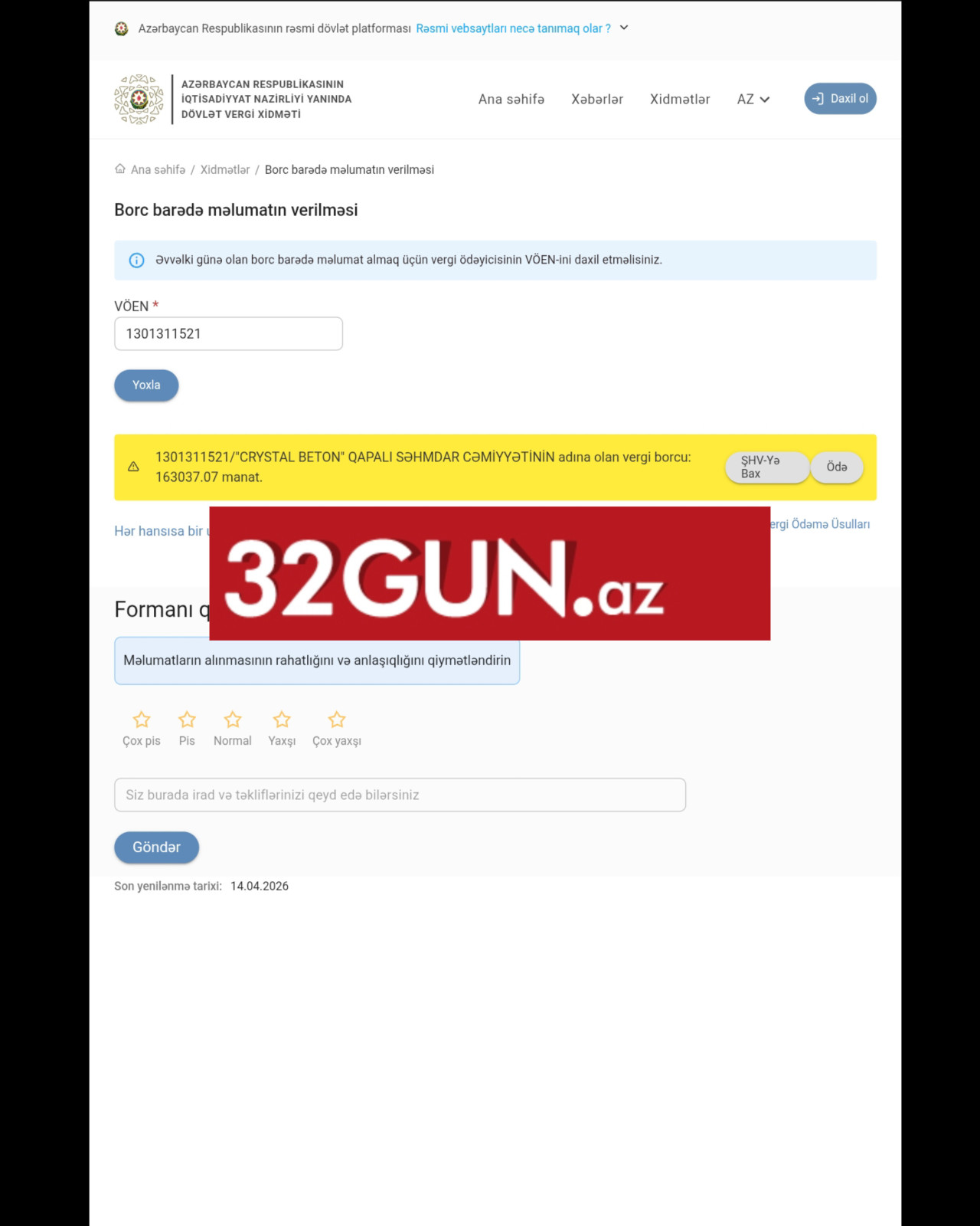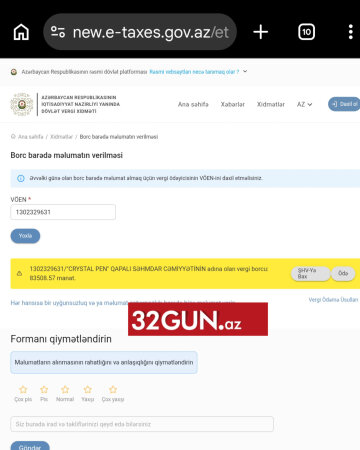 32gun.az-ın əldə etdiyi məlumata görə sözügedən MMC-nin borucu hazırda 163037.07 AZN təşkil edir.
