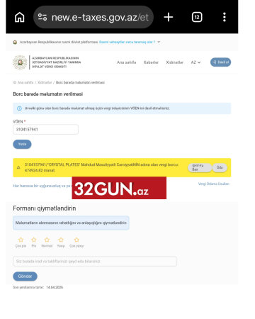 CRYSTAL PLATES" Məhdud Məsuliyyətli Cəmiyyətimin də külli miqdarda vergi borcu mövcuddur. Şirkətin 474924.82 AZN borcu var.
