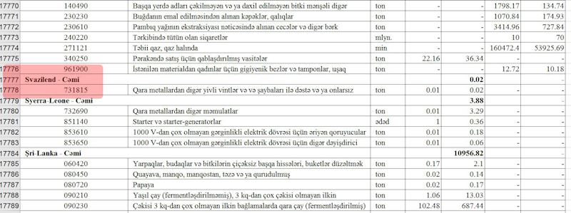 Dövlət Statistika Komitəsinin açıqladığı rəsmi statistik bülletenlərdə Esvatini Krallığının adı Svazilend olaraq qeyd olunur.